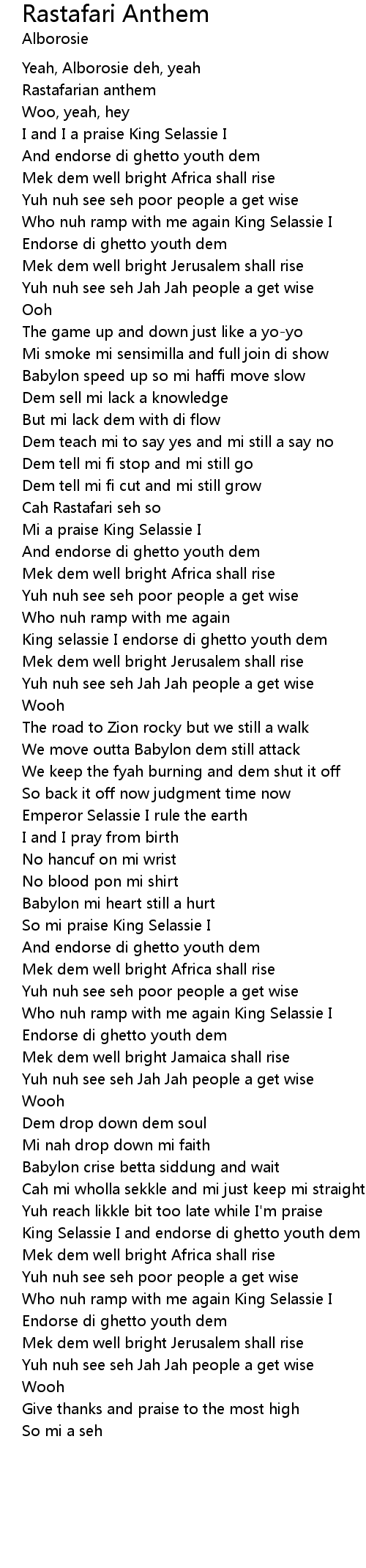 Rastafarian anthem |