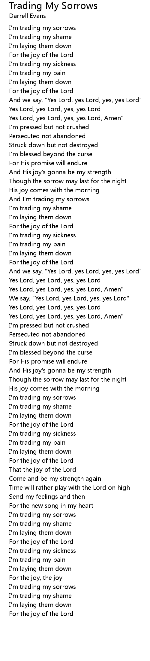 I'm trading my sorrows |