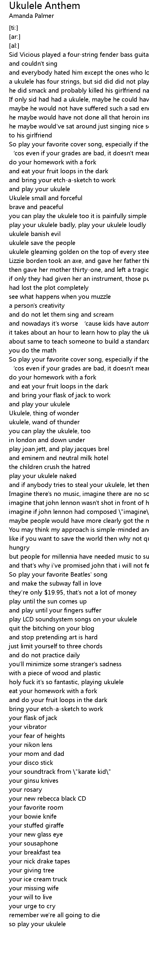 | [04:13.42] | play LCD soundsystem songs on your ukulele |