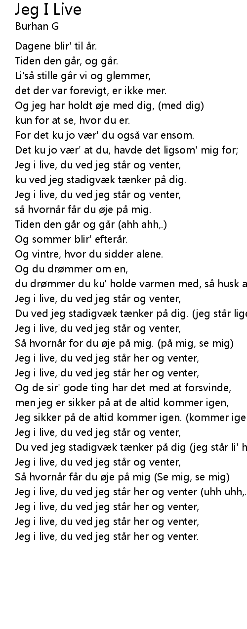 | Jeg i live, du ved jeg st r her og venter uhh uhh,. | |