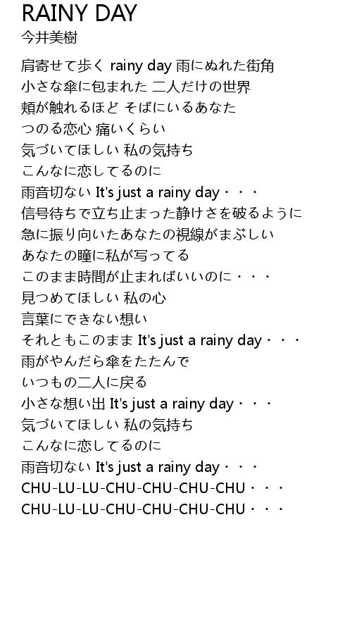 | 肩寄せて歩く rainy day 雨にぬれた街角 | |