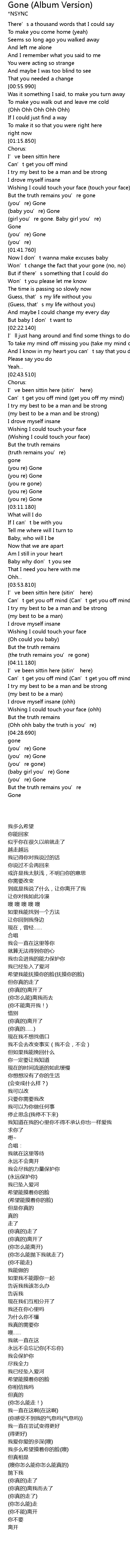 | [01:36.560] | girl you' re gone. Baby girl you' re |