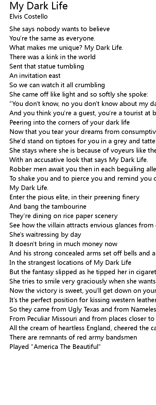 "You don't know, no you don't know about my dark life" |