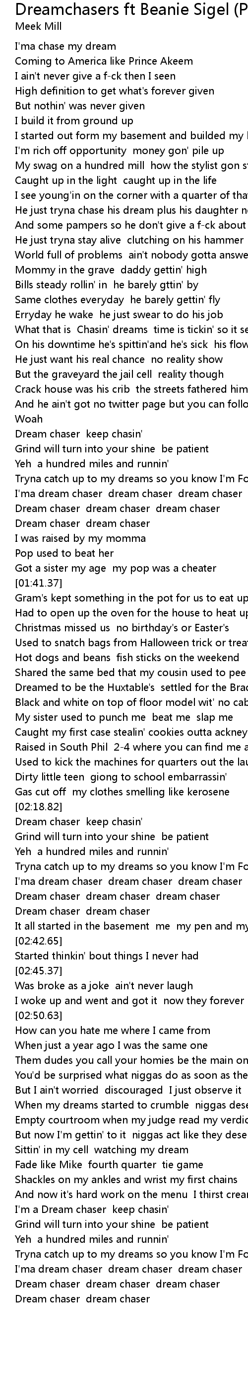 I'ma dream chaser dream chaser dream chaser |