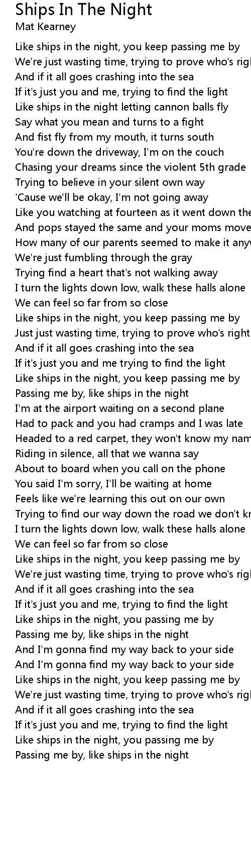 Like ships in the night, you keep passing me by |