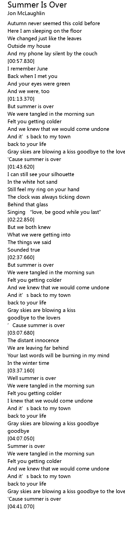 | [01:32.800] | Gray skies are blowing a kiss goodbye to the lovers |