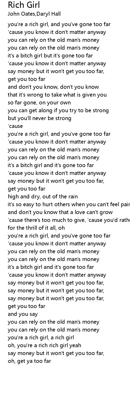 oh, you're a rich rich girl yeah |