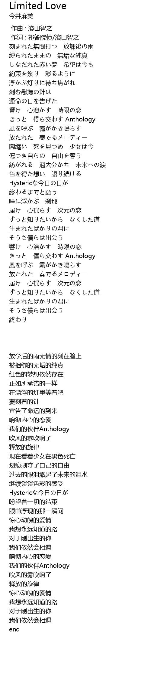 | [01:53.879] | 終わるまでと願う |
