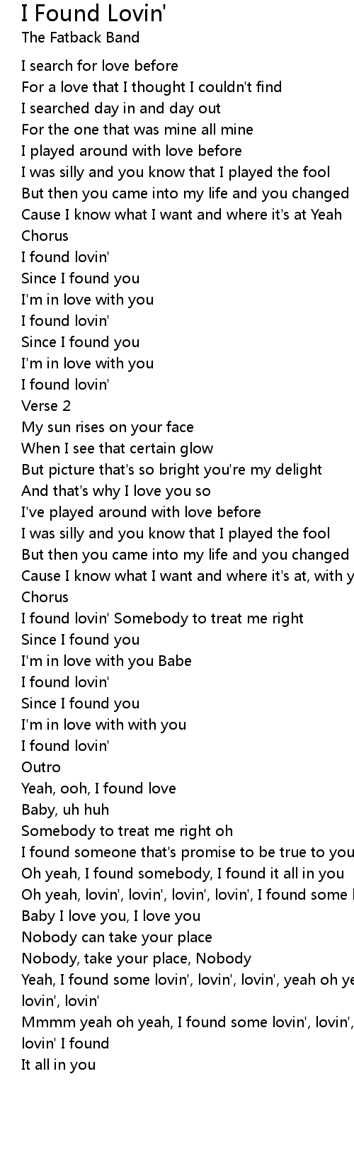 Yeah, I found some lovin', lovin', lovin', yeah oh yea mmmm, I found some lovin', lovin' |