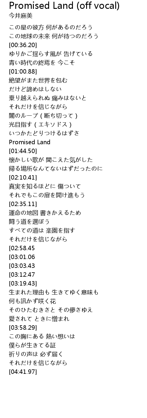 | [04:34.77][03:12.47] | Promised Land |