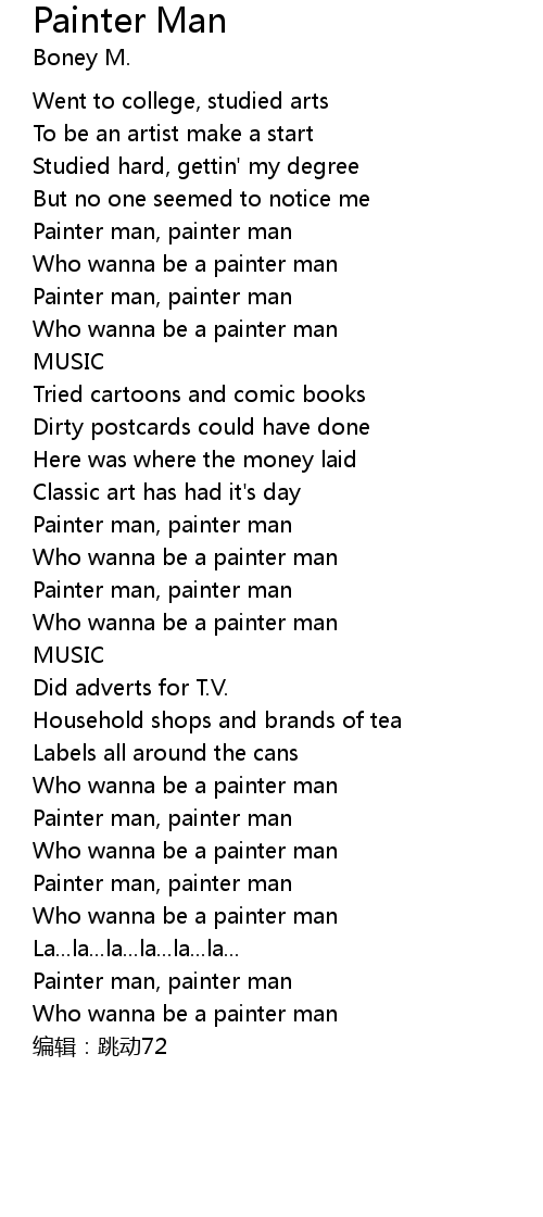 | [00:46.16] | Painter man, painter man |