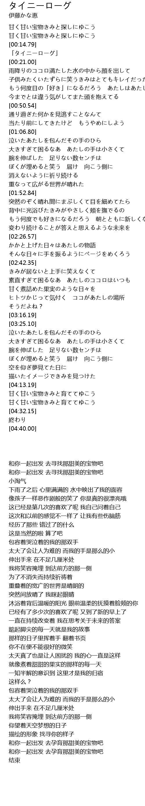 | [00:00.00] | 甘く甘い宝物きみと探しにゆこう |