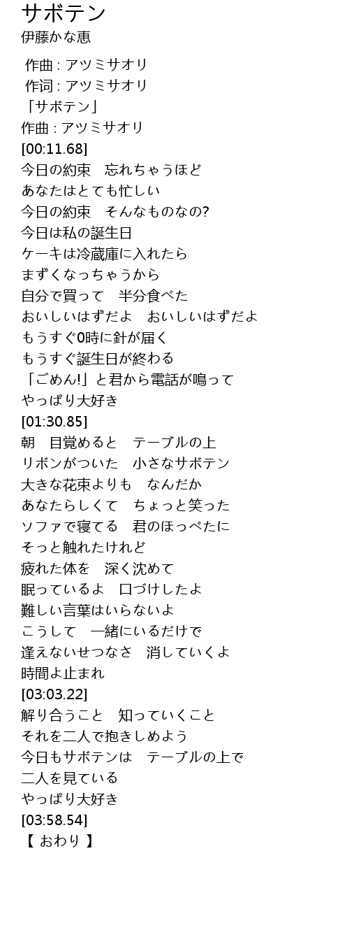 作词 : アツミサオリ |