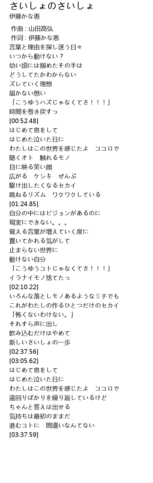 | [00:01.00] | 作词 : 伊藤かな恵 |