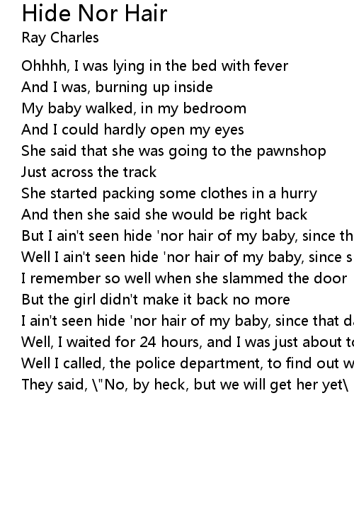 Well I ain't seen hide 'nor hair of my baby, since she went away |