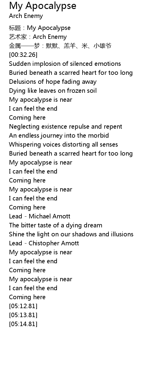 | [00:16.26] | yi shu jia: Arch Enemy |