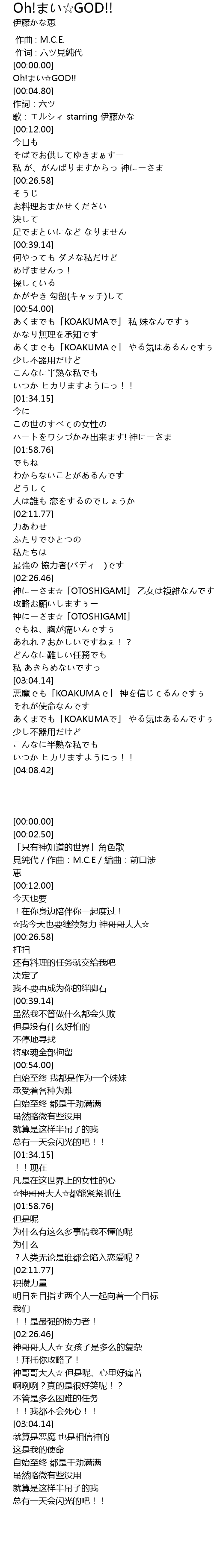 | [00:02.50] | Oh!まい☆GOD!! |