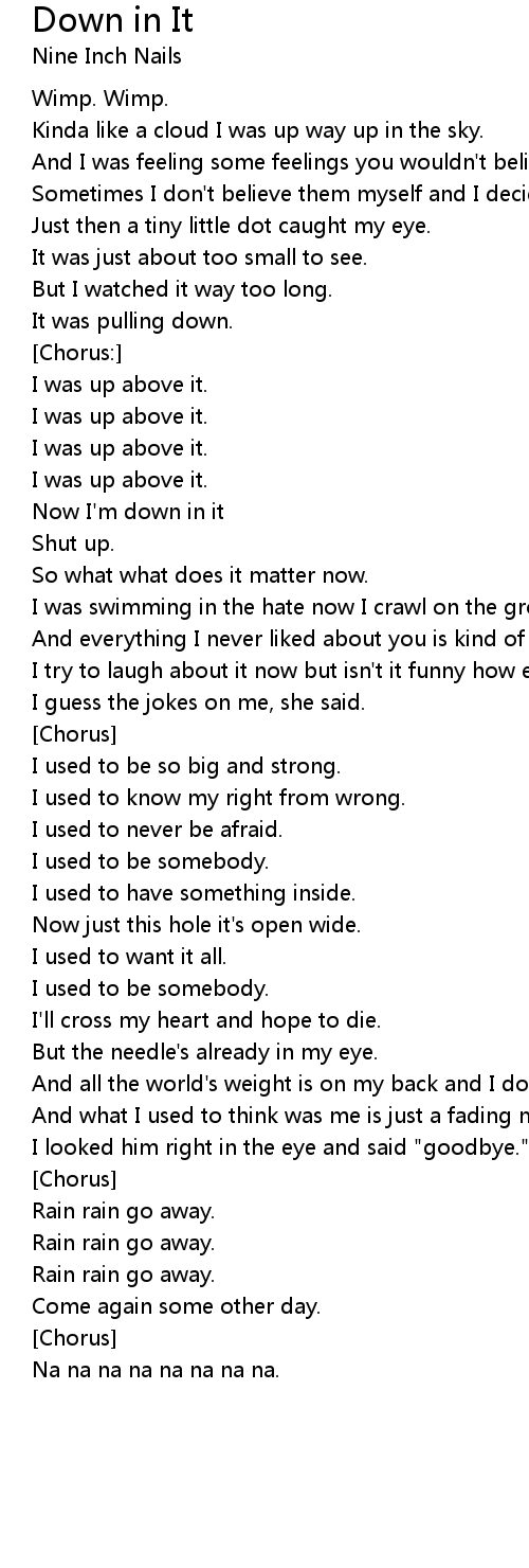 Now I'm down in it |