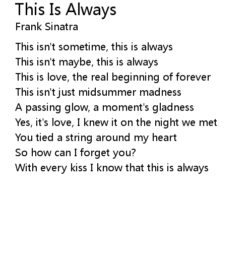 | With every kiss I know that this is always |