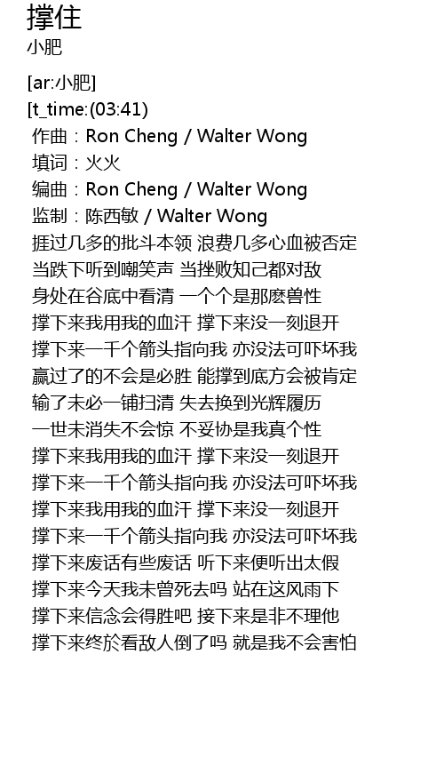 | [00:02.260][t_time:(03:41)] | 小肥 - 撑住 |