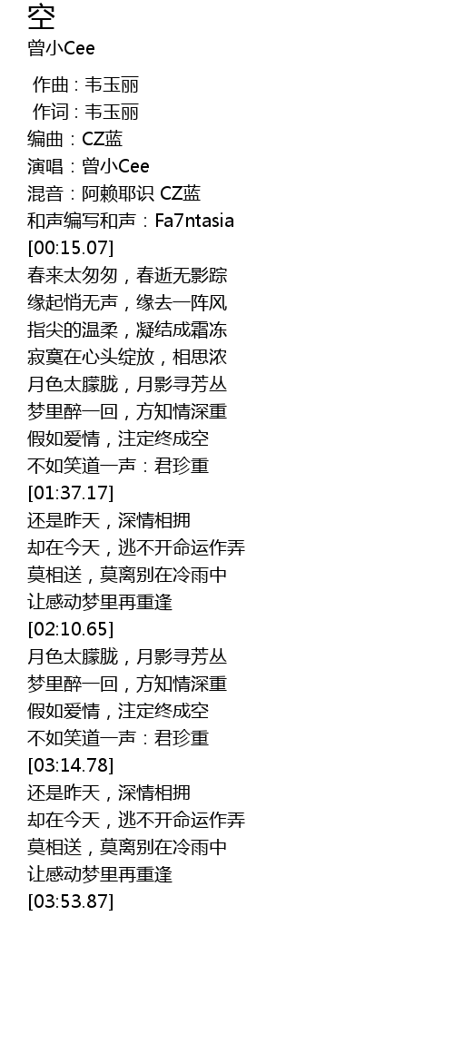 | [00:13.16] | 和声编写和声:Fa7ntasia |