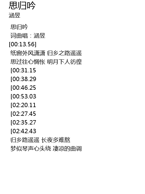 | [00:16.03] | 纸窗外风潇潇 归乡之路遥遥 |