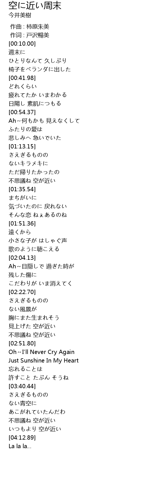 | [04:04.05] | いつもより 空が近い |