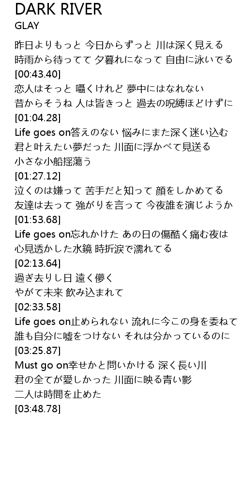 | [03:08.38] | Life goes on止められない 流れに今この身を委ねて |