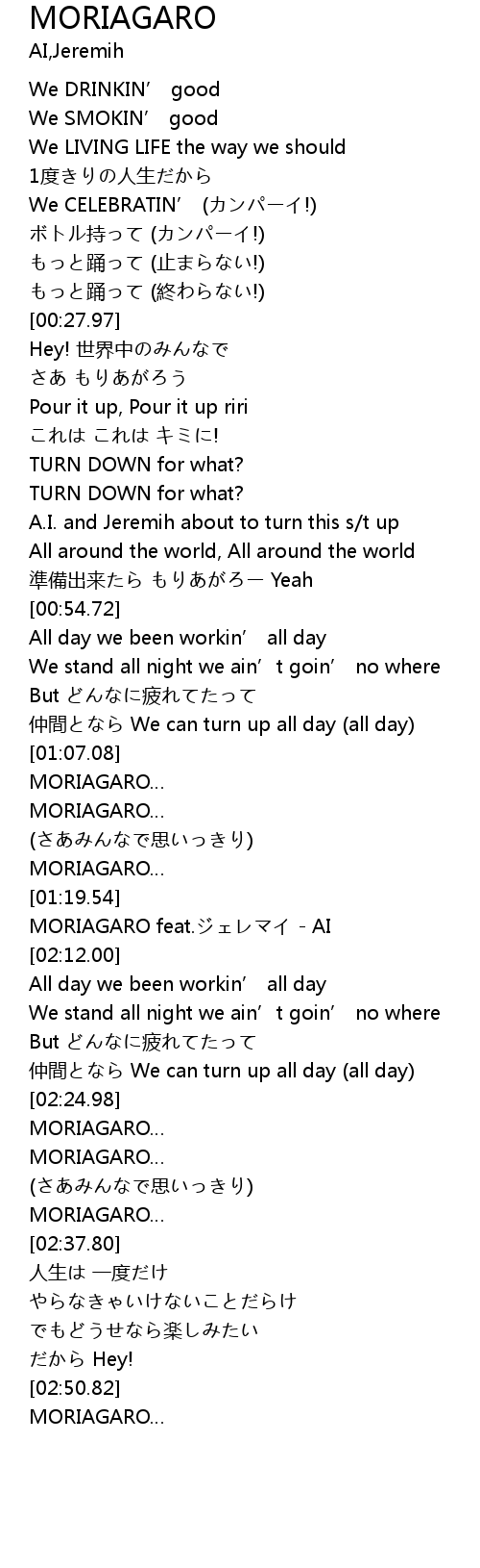 | [01:19.55] | MORIAGARO feat.ジェレマイ - AI |