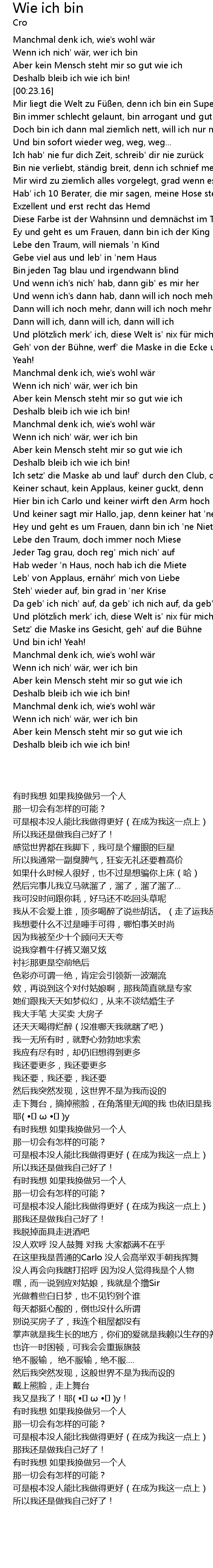 | [00:20.19] | Deshalb bleib ich wie ich bin! |