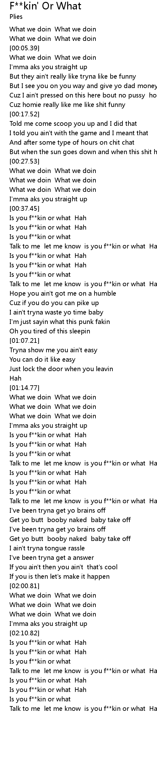 Talk to me let me know is you f**kin or what Hah |