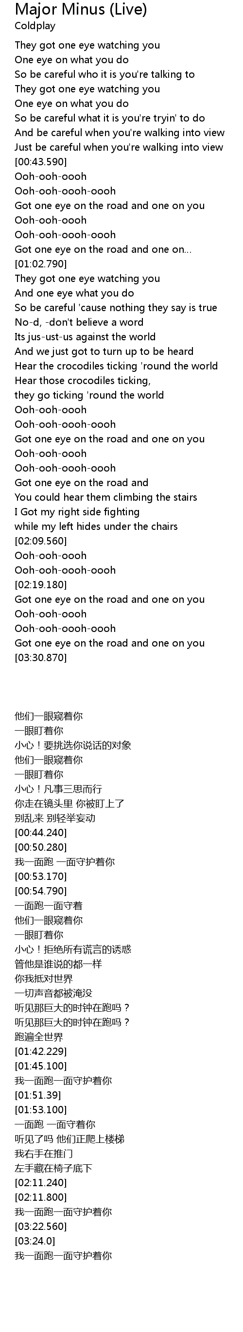 | [00:21.10] | One eye on what you do |