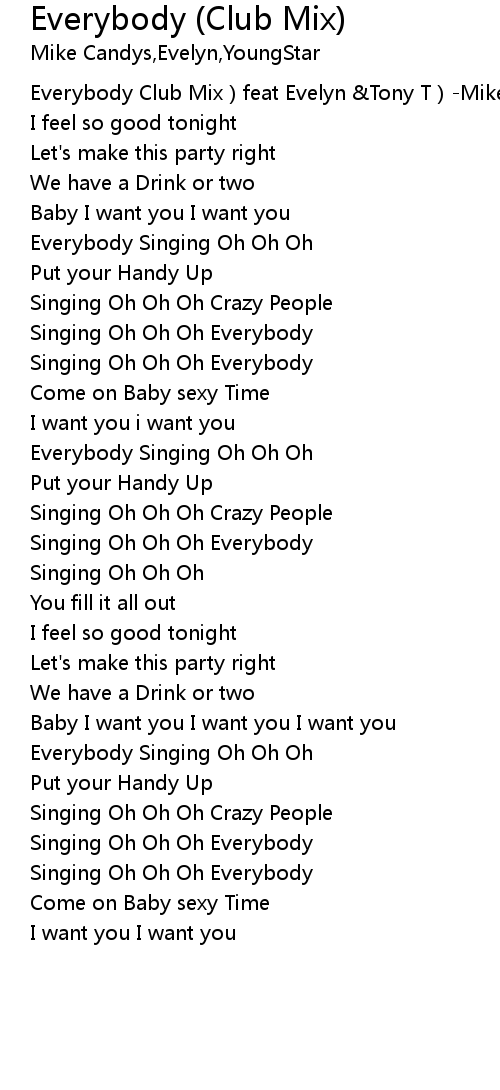 | [00:00.250] | Everybody Club Mix feat Evelyn Tony T Mike Candys |