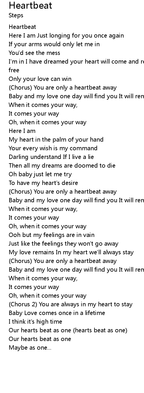 (Chorus) You are only a heartbeat away |