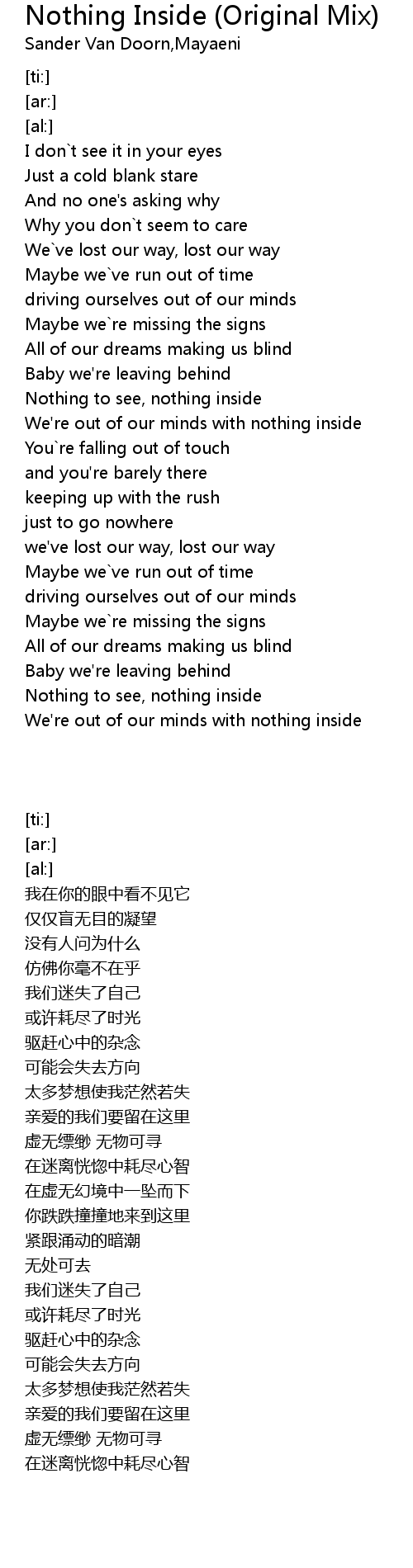 We're out of our minds with nothing inside |