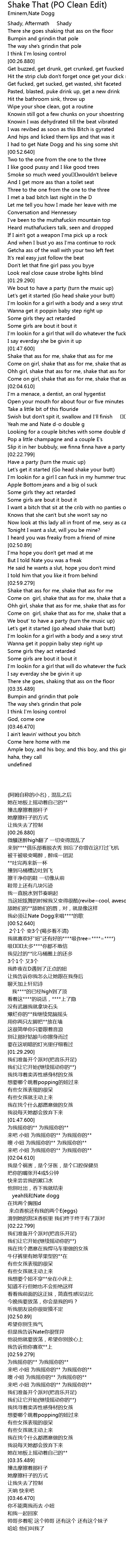 | [03:03.100] | Come on girl, shake that ass for me, shake that ass for me |