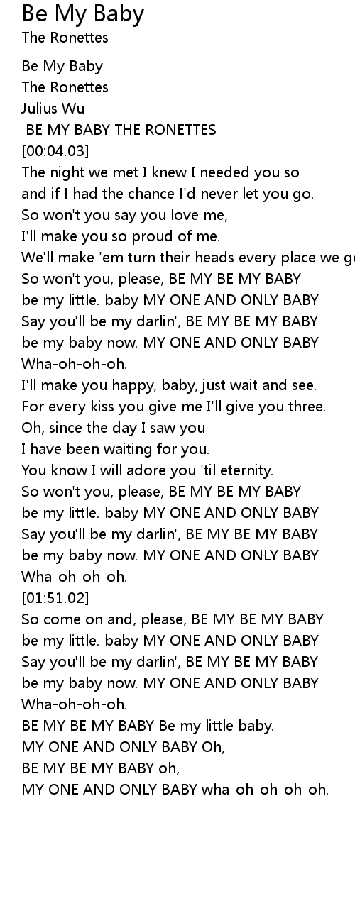 [01:58.79] Say you'll be my darlin', BE MY BE MY BABY
