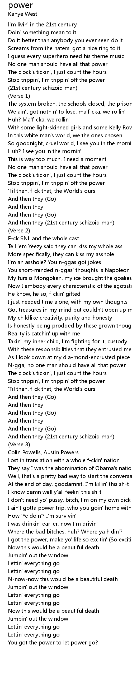 N-gga, no one man should have all that power |