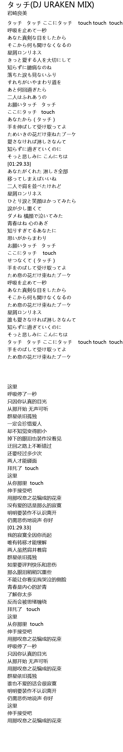 | [03:33.67] | タッチ タッチ ここにタッチ touch touch touch |