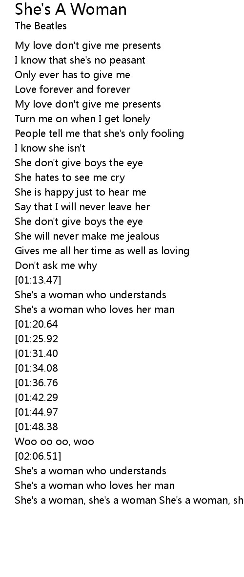 She's a woman, she's a woman She's a woman, she's a woman |