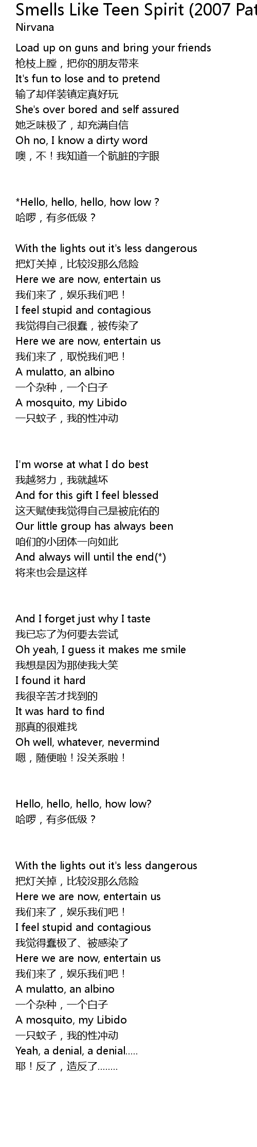 | Song | Smells Like Teen Spirit (2007 Patrick Alavi Rerox) |