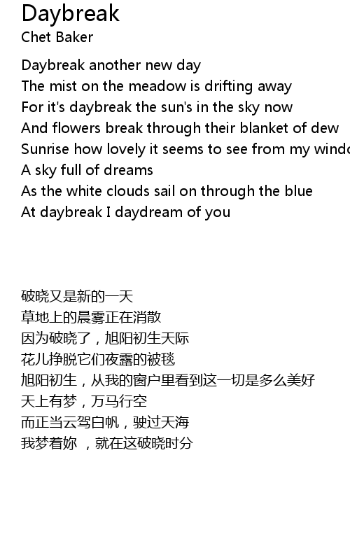 | [00:02.034] | Daybreak another new day |