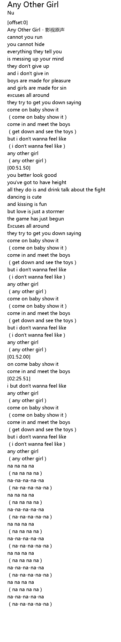 | [00:00.64] | Any Other Girl ying shi yuan sheng |