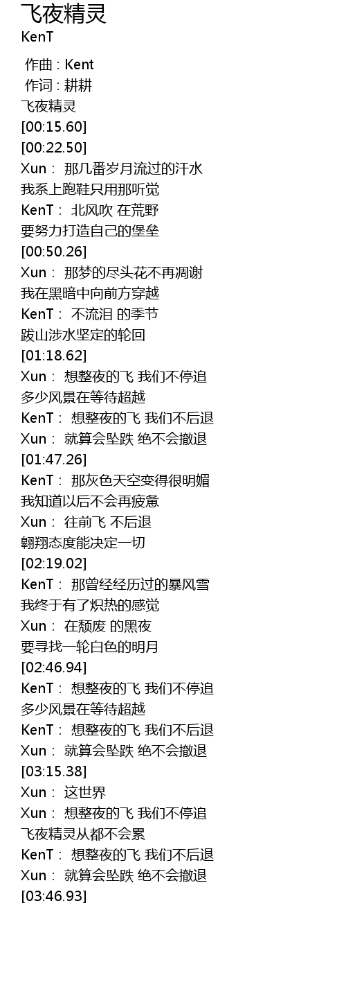 | [03:00.77] | KenT: 想整夜的飞 我们不后退 |