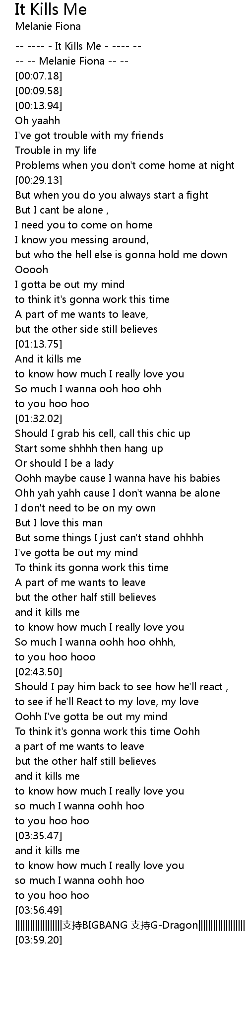 | [00:02.65] | -- ---- - It Kills Me - ---- -- |