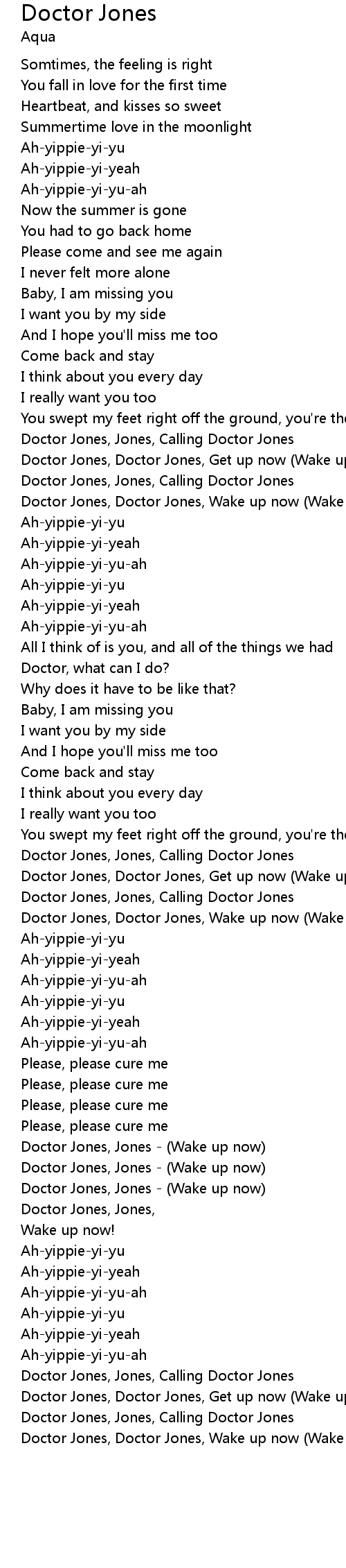 Doctor Jones, Jones - (Wake up now) |