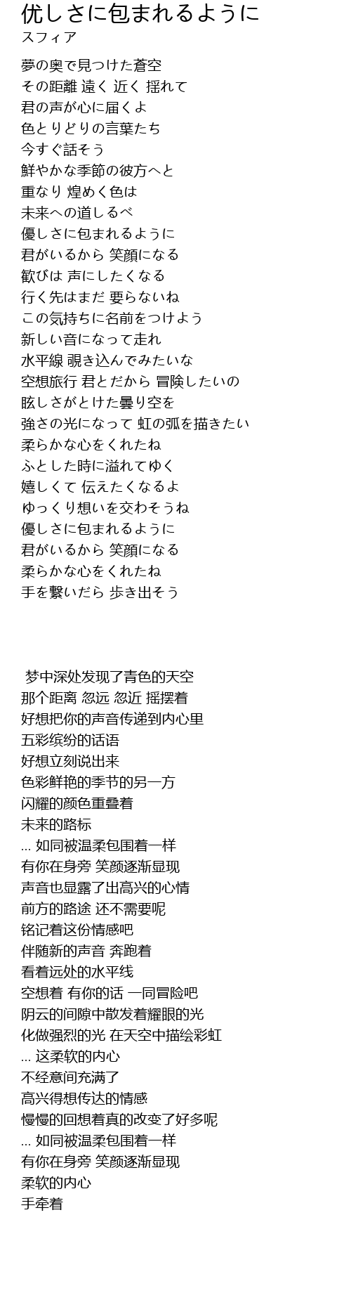 | [03:25.19] | 優しさに包まれるように |
