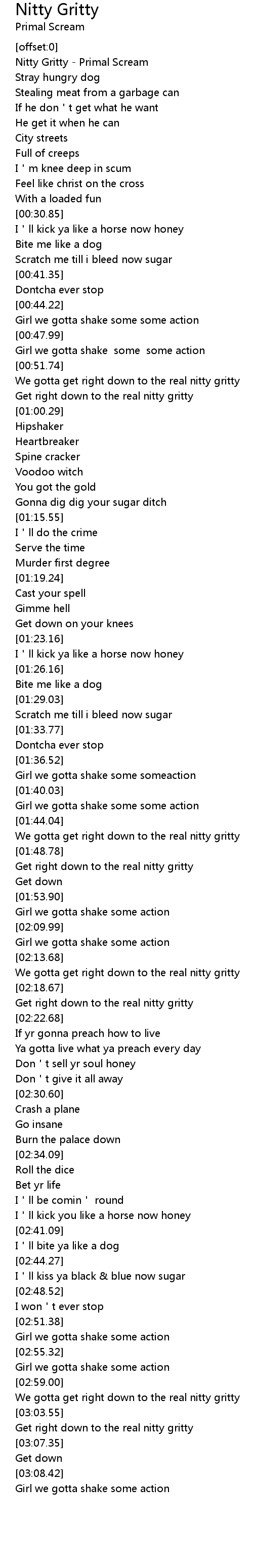 | [00:00.47] | Nitty Gritty Primal Scream |