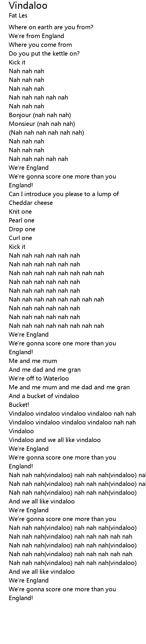 Vindaloo vindaloo vindaloo vindaloo nah nah |