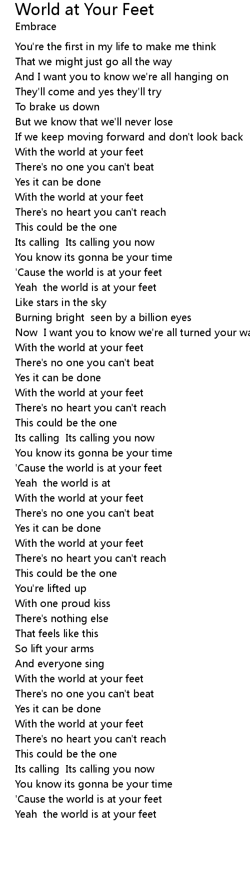 Yeah the world is at your feet |